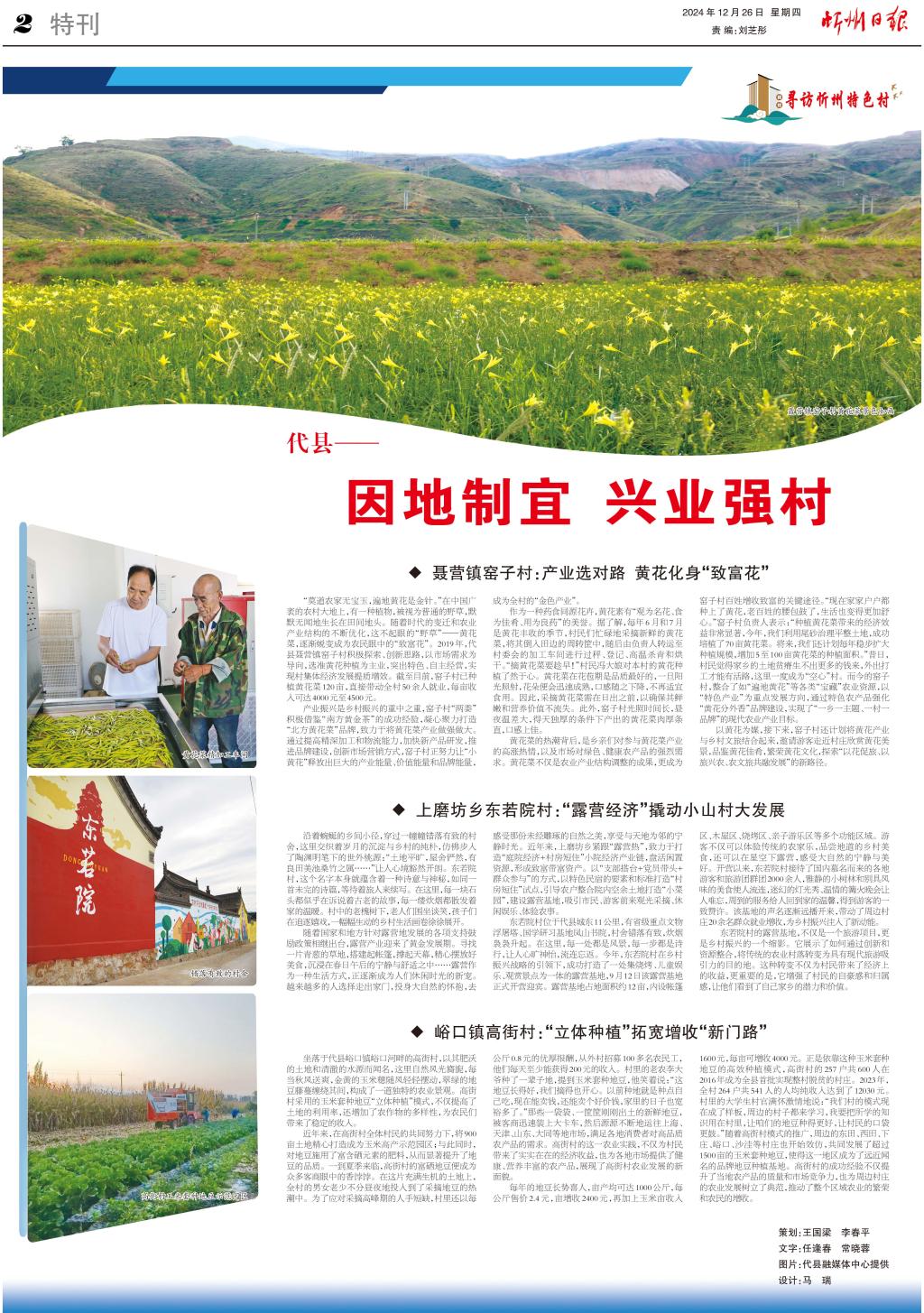 ◆ 聶營鎮(zhèn)窯子村:產(chǎn)業(yè)選對路 黃花化身“致富花” “莫道農(nóng)家無寶玉,遍地黃花是金針。”在中國廣袤的農(nóng)村大地上,有一種植物,被視為普通的野草,默默無聞地生長在田間地頭。隨著時代的變遷和農(nóng)業(yè)產(chǎn)業(yè)結(jié)構(gòu)的不斷優(yōu)化,這不起眼的“野草”——黃花菜,逐漸蛻變成為農(nóng)民眼中的“致富花”。2019年,代縣聶營鎮(zhèn)窯子村積極探索、創(chuàng)新思路,以市場需求為導(dǎo)向,選準(zhǔn)黃花種植為主業(yè),突出特色、自主經(jīng)營,實現(xiàn)村集體經(jīng)濟(jì)發(fā)展提質(zhì)增效。截至目前,窯子村已種植黃花菜120畝,直接帶動全村50余人就業(yè),每畝收入可達(dá)4000元至4500元。 產(chǎn)業(yè)振興是鄉(xiāng)村振興的重中之重,窯子村“兩委”積極借鑒“南方黃金茶”的成功經(jīng)驗,凝心聚力打造“北方黃花菜”品牌,致力于將黃花菜產(chǎn)業(yè)做強做大。通過提高精深加工和物流能力,加快新產(chǎn)品研發(fā),推進(jìn)品牌建設(shè),創(chuàng)新市場營銷方式,窯子村正努力讓“小黃花”釋放出巨大的產(chǎn)業(yè)能量、價值能量和品牌能量,成為全村的“金色產(chǎn)業(yè)”。 作為一種藥食同源花卉,黃花素有“觀為名花、食為佳肴、用為良藥”的美譽。據(jù)了解,每年6月和7月是黃花豐收的季節(jié),村民們忙碌地采摘新鮮的黃花菜,將其倒入田邊的周轉(zhuǎn)筐中,隨后由負(fù)責(zé)人轉(zhuǎn)運至村委會的加工車間進(jìn)行過秤、登記、高溫殺青和烘干。“摘黃花菜要趁早!”村民馮大娘對本村的黃花種植了然于心。黃花菜在花苞期是品質(zhì)最好的,一旦陽光照射,花朵便會迅速成熟,口感隨之下降,不再適宜食用。因此,采摘黃花菜需在日出之前,以確保其鮮嫩和營養(yǎng)價值不流失。此外,窯子村光照時間長,晝夜溫差大,得天獨厚的條件下產(chǎn)出的黃花菜肉厚條直,口感上佳。 黃花菜的熱潮背后,是鄉(xiāng)親們對參與黃花菜產(chǎn)業(yè)的高漲熱情,以及市場對綠色、健康農(nóng)產(chǎn)品的強烈需求。黃花菜不僅是農(nóng)業(yè)產(chǎn)業(yè)結(jié)構(gòu)調(diào)整的成果,更成為窯子村百姓增收致富的關(guān)鍵途徑?!艾F(xiàn)在家家戶戶都種上了黃花,老百姓的腰包鼓了,生活也變得更加舒心?!备G子村負(fù)責(zé)人表示:“種植黃花菜帶來的經(jīng)濟(jì)效益非常顯著,今年,我們利用尾砂治理平整土地,成功培植了70畝黃花菜。將來,我們還計劃每年穩(wěn)步擴(kuò)大種植規(guī)模,增加5至100畝黃花菜的種植面積?!蔽羧眨迕裼X得家鄉(xiāng)的土地貧瘠生不出更多的錢來,外出打工才能有活路,這里一度成為“空心”村。而今的窯子村,整合了如“遍地黃花”等各類“寶藏”農(nóng)業(yè)資源,以“特色產(chǎn)業(yè)”為重點發(fā)展方向,通過特色農(nóng)產(chǎn)品強化“黃花分外香”品牌建設(shè),實現(xiàn)了“一鄉(xiāng)一主題、一村一品牌”的現(xiàn)代農(nóng)業(yè)產(chǎn)業(yè)目標(biāo)。 以黃花為媒,接下來,窯子村還計劃將黃花產(chǎn)業(yè)與鄉(xiāng)村文旅結(jié)合起來,邀請游客走近村莊欣賞黃花美景,品鑒黃花佳肴,繁榮黃花文化,探索“以花促旅、以旅興農(nóng)、農(nóng)文旅共融發(fā)展”的新路徑。 ◆ 上磨坊鄉(xiāng)東若院村:“露營經(jīng)濟(jì)”撬動小山村大發(fā)展 沿著蜿蜒的鄉(xiāng)間小徑,穿過一幢幢錯落有致的村舍,這里交織著歲月的沉淀與鄉(xiāng)村的純樸,仿佛步入了陶淵明筆下的世外桃源:“土地平曠,屋舍儼然,有良田美池桑竹之屬……”讓人心境豁然開朗。東若院村,這個名字本身就蘊含著一種詩意與神秘,如同一首未完的詩篇,等待著旅人來續(xù)寫。在這里,每一塊石頭都似乎在訴說著古老的故事,每一縷炊煙都散發(fā)著家的溫暖。村中的老槐樹下,老人們圍坐談笑,孩子們在追逐嬉戲,一幅幅生動的鄉(xiāng)村生活畫卷徐徐展開。 隨著國家和地方針對露營地發(fā)展的各項支持鼓勵政策相繼出臺,露營產(chǎn)業(yè)迎來了黃金發(fā)展期。尋找一片青蔥的草地,搭建起帳篷,撐起天幕,精心擺放好美食,沉浸在春日午后的寧靜與舒適之中……露營作為一種生活方式,正逐漸成為人們休閑時光的新寵。越來越多的人選擇走出家門,投身大自然的懷抱,去感受那份未經(jīng)雕琢的自然之美,享受與天地為鄰的寧靜時光。近年來,上磨坊鄉(xiāng)緊跟“露營熱”,致力于打造“庭院經(jīng)濟(jì)+村房短住”小院經(jīng)濟(jì)產(chǎn)業(yè)鏈,盤活閑置資源,形成致富帶富資產(chǎn)。以“支部搭臺+黨員帶頭+群眾參與”的方式,以特色民宿的要素和標(biāo)準(zhǔn)打造“村房短住”試點,引導(dǎo)農(nóng)戶整合院內(nèi)空余土地打造“小菜園”,建設(shè)露營基地,吸引市民、游客前來觀光采摘、休閑娛樂、體驗農(nóng)事。 東若院村位于代縣城東11公里,有省級重點文物浮屠塔、國學(xué)研習(xí)基地鳳山書院,村舍錯落有致,炊煙裊裊升起。在這里,每一處都是風(fēng)景,每一步都是詩行,讓人心曠神怡,流連忘返。今年,東若院村在鄉(xiāng)村振興戰(zhàn)略的引領(lǐng)下,成功打造了一處集燒烤、兒童娛樂、觀賞景點為一體的露營基地,9月12日該露營基地正式開營迎賓。露營基地占地面積約12畝,內(nèi)設(shè)帳篷區(qū)、木屋區(qū)、燒烤