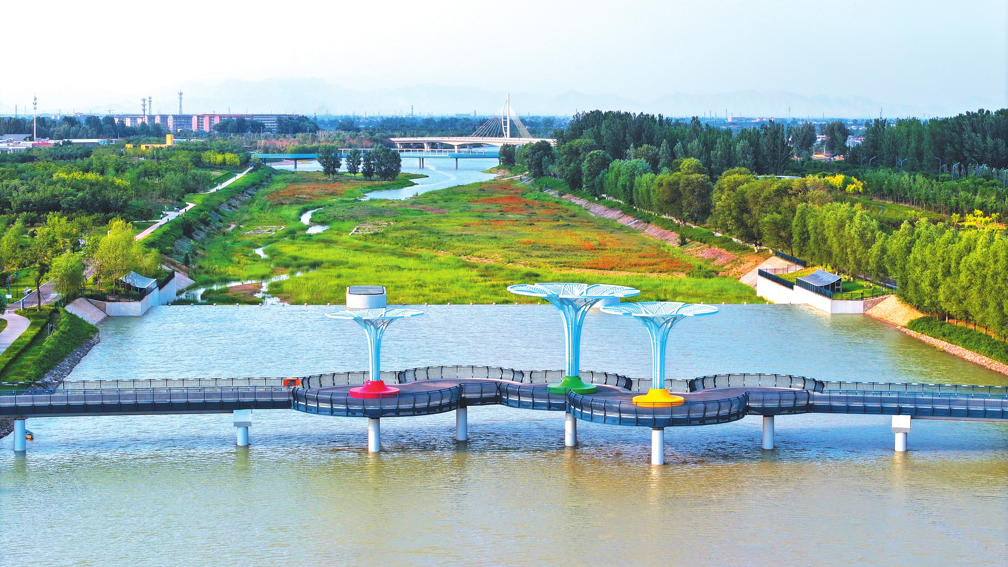 如今牧馬河生態(tài)公園已成為田園牧歌式城市新景觀,成為市民休閑新空間,帶動文旅產(chǎn)業(yè)發(fā)展,與云中河景區(qū)共同構建“城在綠中”的公園體系。