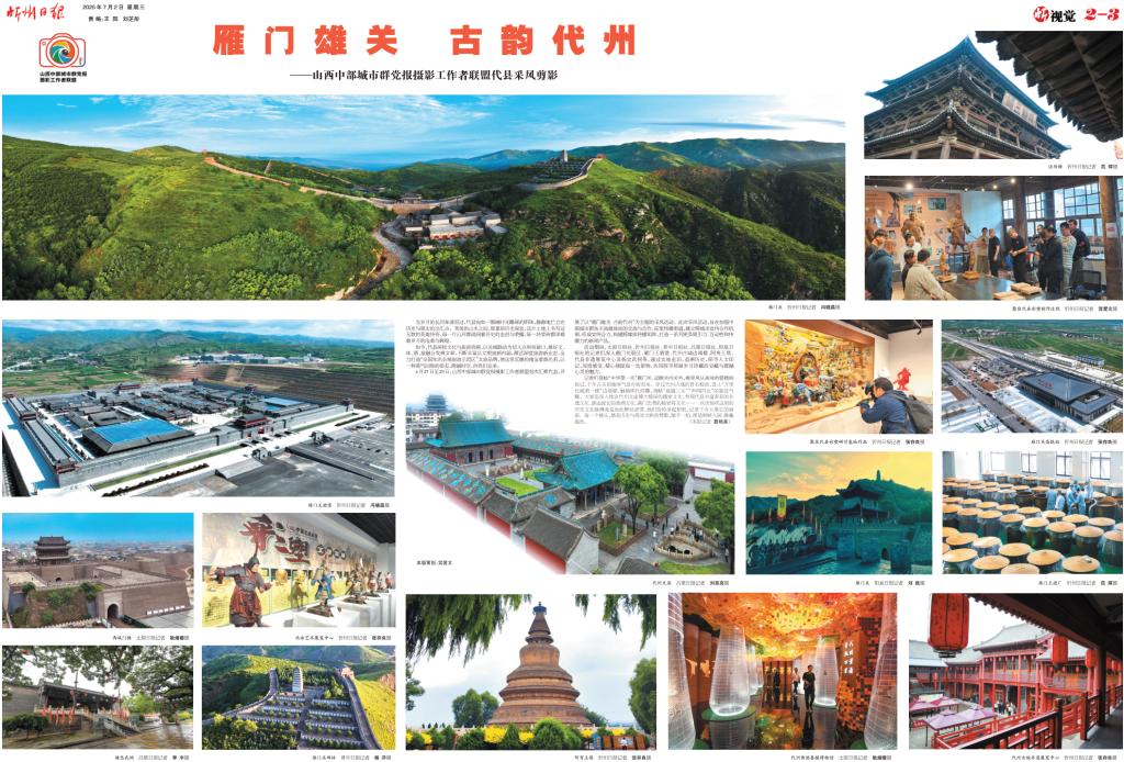 6月27日至29日,山西中部城市群黨報攝影工作者聯(lián)盟首次匯聚代縣,開展了以“雁門雄關(guān) 古韻代州”為主題的采風(fēng)活動。此次采風(fēng)活動,旨在加強中部城市群各主流媒體間的交流與合作,拓寬傳播渠道,建立跨城市宣傳合作機制,形成宣傳合力,構(gòu)建跨媒體傳播矩陣,打造一系列更具吸引力、互動性和傳播力的新聞產(chǎn)品。 活動期間,太原日報社、忻州日報社、晉中日報社、呂梁日報社、陽泉日報社的記者們深入雁門關(guān)景區(qū)、雁門王酒堡、代州古城邊靖樓、阿育王塔、代縣非遺展覽中心及楊忠武祠等,通過實地走訪,追溯歷史,探尋人文印記,深度感受、精心捕捉每一處景物,共同探尋那被歲月珍藏的寶藏與震撼心靈的魅力。 記者們登臨“中華第一關(guān)”雁門關(guān),遠(yuǎn)眺關(guān)內(nèi)關(guān)外,感受風(fēng)從高聳的箭樓間掠過,千年古關(guān)的雄渾氣息撲面而來。穿過代州古城的青石板街,登上“萬里長城第一樓”邊靖樓,觸摸明代磚雕,領(lǐng)略“威鎮(zhèn)三關(guān)”“聲聞四達”的豪邁氣概。大家還深入體會代州文廟博大精深的儒家文化,參觀代縣豐富多彩的非遺文化、源遠(yuǎn)流長的黃酒文化、滿門忠勇的楊家將文化……一次次驚嘆這里的歷史文化脈搏竟是如此鮮活滾燙,他們紛紛舉起相機,記錄下令人難忘的畫面。每一個鏡頭,都是歷史與現(xiàn)實交映的贊歌,隨手一拍,便是幀幀入畫、雅趣盎然。 (本報記者 聶艷英)
