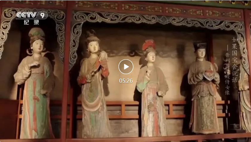 “一千年前,她搬進(jìn)了一座大殿,進(jìn)深六間,面闊七間,是她不曾想象的奢華,還有望到脖子酸的牌匾,懸甕山麓,晉水發(fā)源,是祭祀西周晉國(guó)第一任諸侯姬虞的祠堂——晉祠?!痹凇度绻麌?guó)寶會(huì)說話》第四季第13集中,全景呈現(xiàn)了晉祠圣母殿侍女像的文物故事。