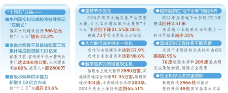 “十四五”全省落實水利建設投資986億元,較“十三五”增長73.3%,2023年、2024年年均突破200億元;今年1月—11月完成水利投資210億元,同比增長13.5%。水利落實和完成投資持續(xù)呈現“雙增長”良好態(tài)勢。