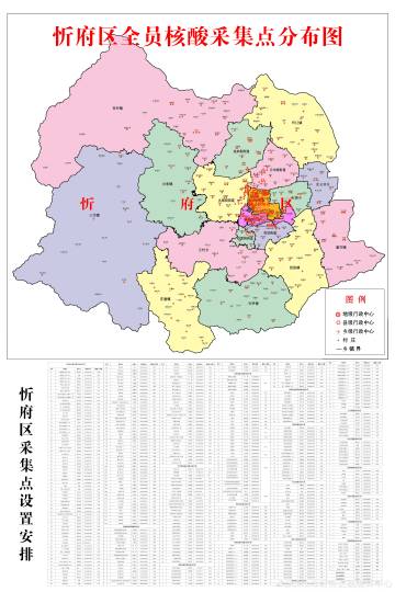 忻府區(qū)全員核酸采集點(diǎn)分布圖
