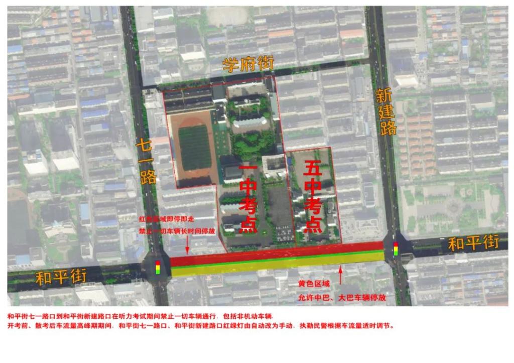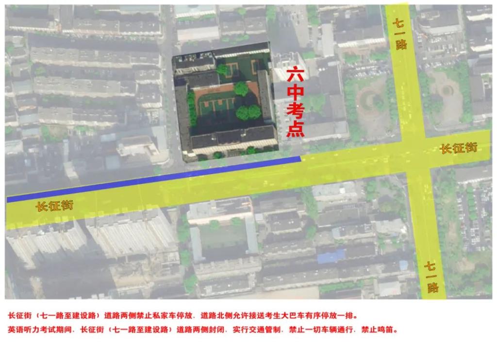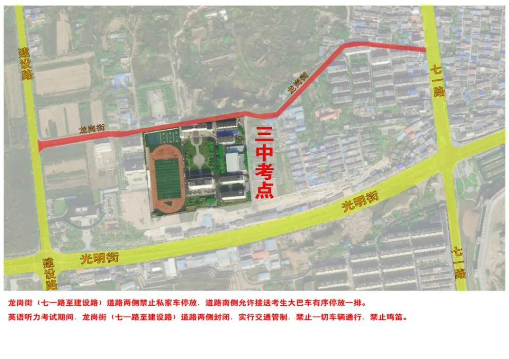 龍崗街(七一路至建設(shè)路)道路兩側(cè)禁止私家車停放,道路南側(cè)允許接送考生大巴車有序停放一排。 英語聽力考試期間,龍崗街(七一路至建設(shè)路)道路兩側(cè)封閉,實行交通管制,禁止一切車輛通行,禁止鳴笛。 忻州六中考點