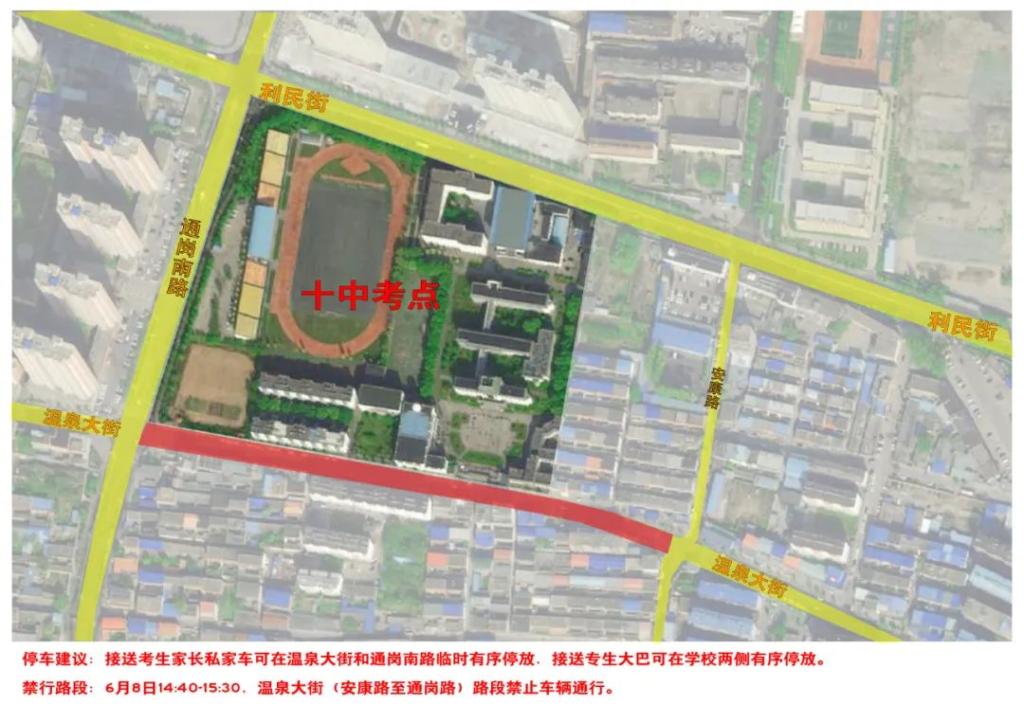 停車建議:接送考生家長私家車可在溫泉大街和通崗南路臨時有序停放,接送考生大巴可在學(xué)校兩側(cè)有序停放。 禁行路段:6月8日14:40-15:30,溫泉大街(安康路至通崗路)路段禁止車輛通行。 忻州十一中考點