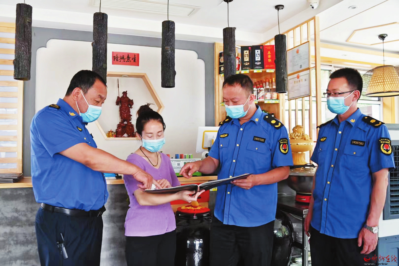 五臺(tái)山綜合行政執(zhí)法人員在飯店進(jìn)行執(zhí)法檢查。宮愛(ài)文 攝