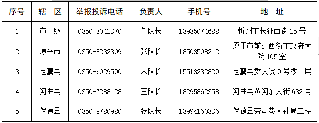 忻州市勞動保障監(jiān)察投訴舉報電話