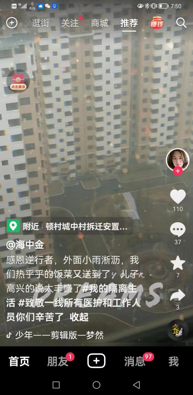 “感恩逆行者,外面小雨淅瀝,我們熱乎乎的飯菜又送到了,兒子高興地說(shuō)太豐盛了……”頓村集中隔離點(diǎn)的一位母親,在抖音上說(shuō)出了暖心的話語(yǔ)。