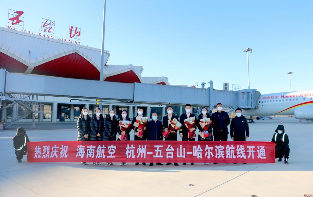 12月10日上午9時整,一架海南航空波音738型飛機平穩(wěn)降落在五臺山機場,標志著杭州-五臺山-哈爾濱航線成功首航。該航線班期為每周二、四、六。杭州-五臺山06:25-09:00,五臺山-哈爾濱09:45-12:15,哈爾濱-五臺山13:15-15:55,五臺山-杭州16:40-18:40。隨后,隨著昆明航空公司波音738型飛機降落,昆明-五臺山-沈陽航線也成功實現(xiàn)首航。本次航班于10:55從昆明起飛,13:50到達五臺山,五臺山14:50起飛,16:45到達沈陽,沈陽17:40起飛,19:50到達五臺山,五臺山20:35起飛,23:50到達昆明,班期為每日一班。