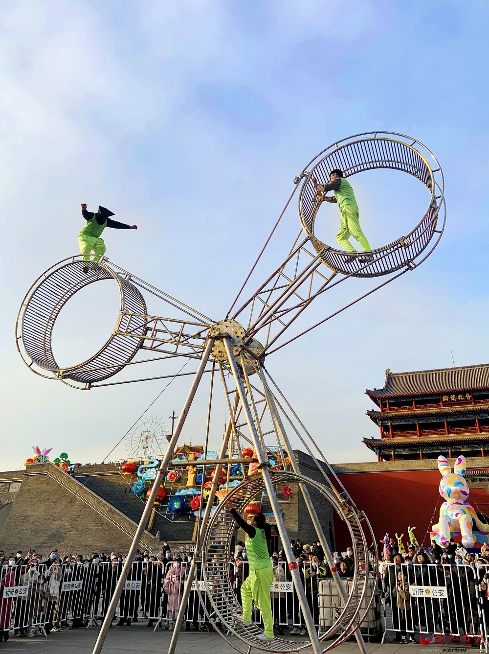| 春節(jié)期間忻州古城上演高空飛輪雜技 |