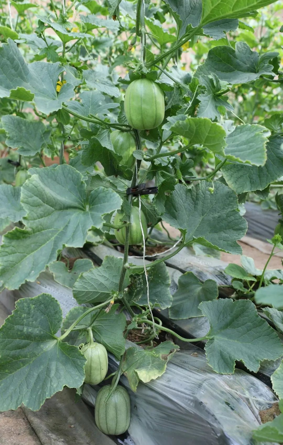 花盆不種花,拿來種瓜?沒錯,在旭來街道部落村農(nóng)業(yè)科技園劉俊武的香瓜棚里,一盆盆“香瓜樹”長勢旺盛,數(shù)不清的小瓜倒掛在瀑布般的瓜藤上,飛舞的蜜蜂時而在瓜蒂間流連尋蜜。
