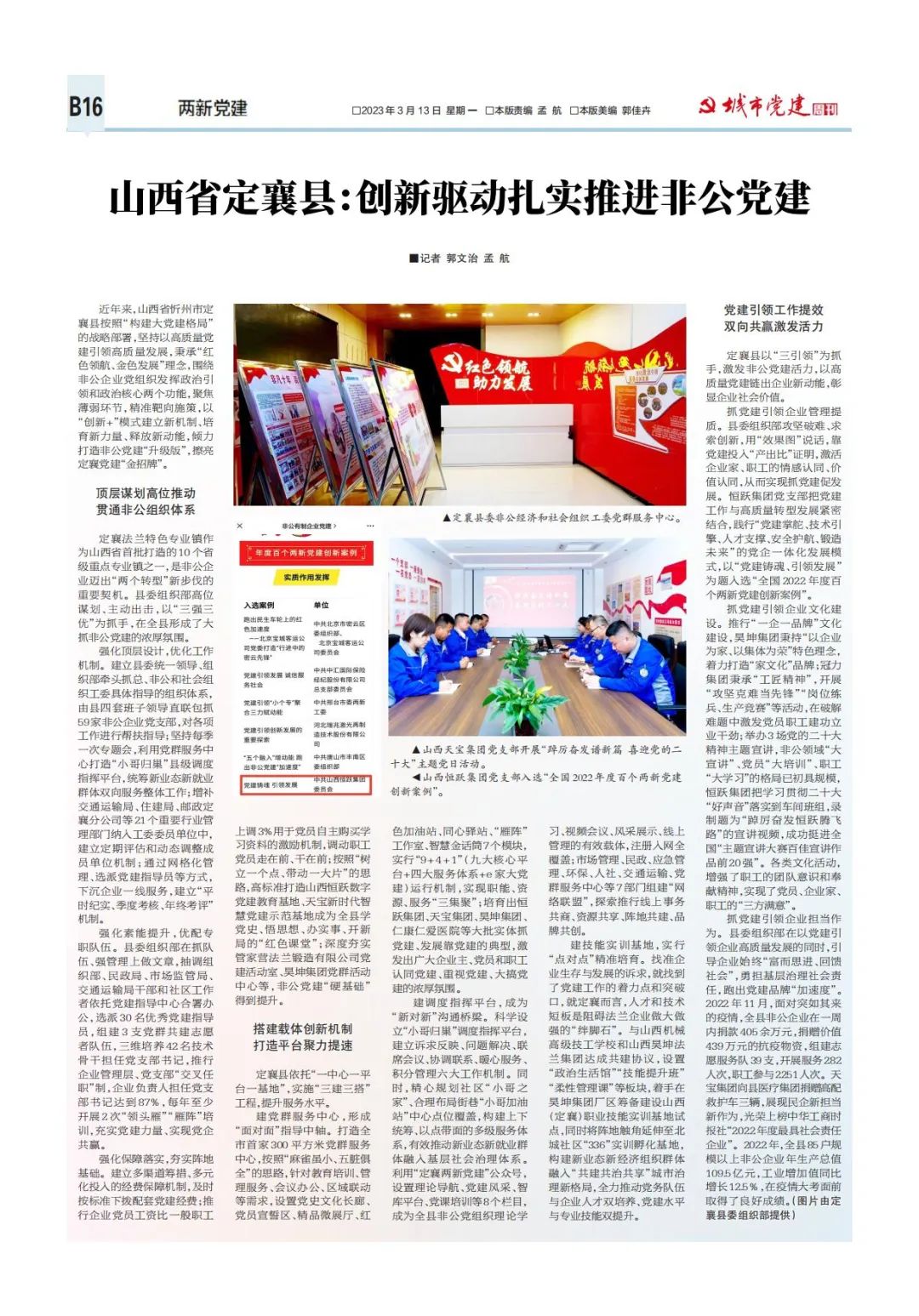 定襄縣以“三引領(lǐng)”為抓手,激發(fā)非公黨建活力,以高質(zhì)量黨建鏈出企業(yè)新動(dòng)能,彰顯企業(yè)社會(huì)價(jià)值。