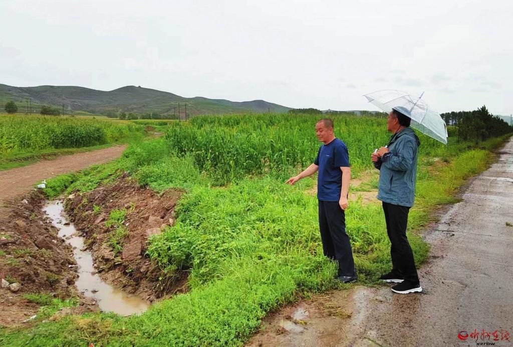 7月30日,神池縣八角鎮(zhèn)八角村駐村工作隊(duì)投身防汛一線排查隱患。 宮皇鈺攝