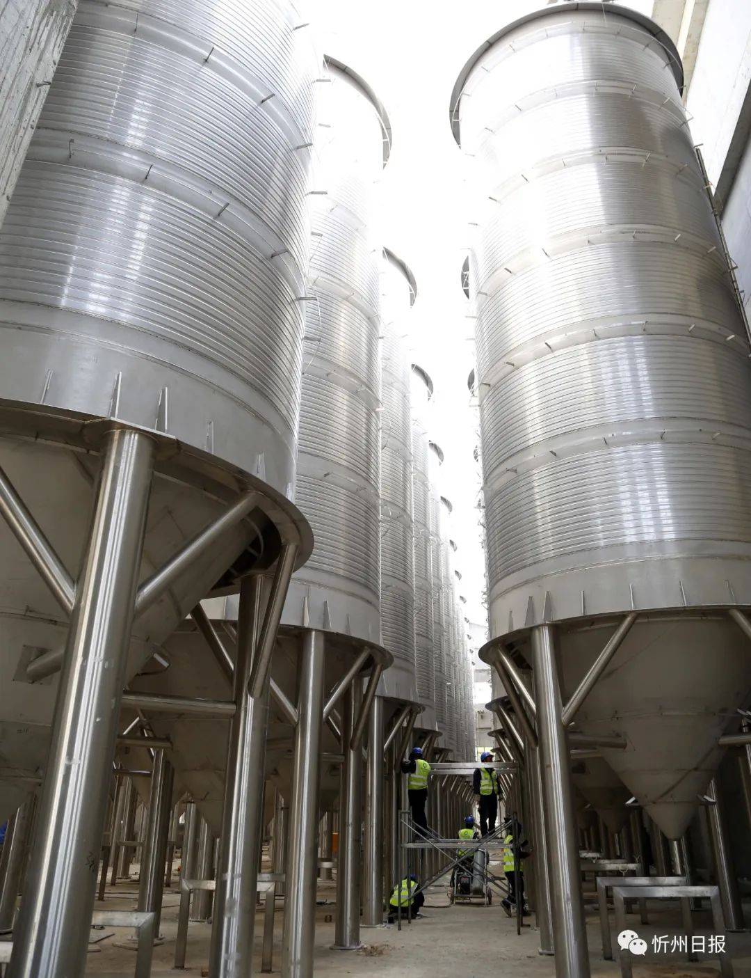 ▲正在建設(shè)中的雁門王10萬噸黃酒生產(chǎn)線發(fā)酵車間