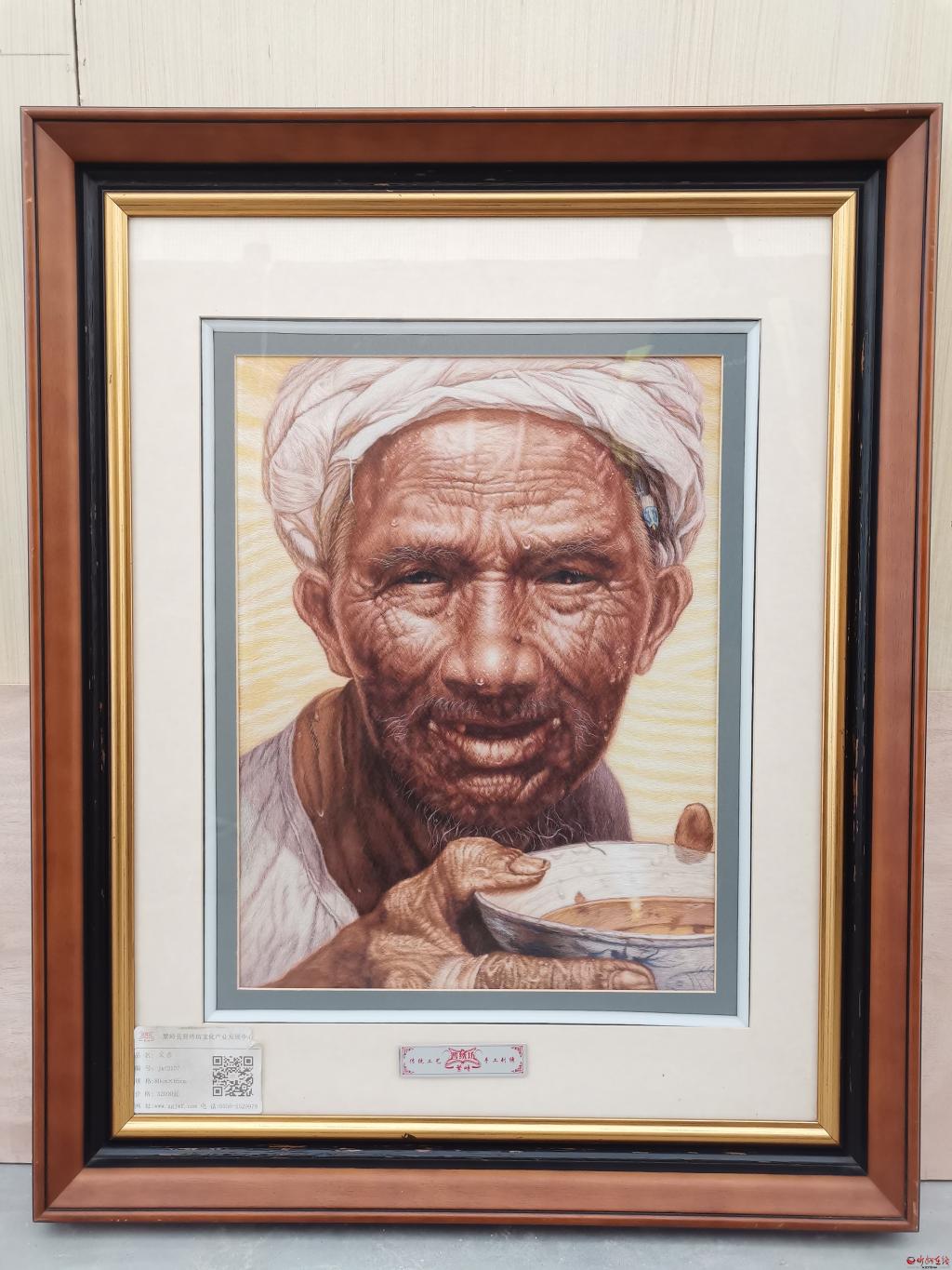 晉繡展品《父親》。以著名油畫(huà)為底圖,由晉繡坊非遺傳承人、資深繁峙繡娘歷時(shí)八個(gè)多月繡制完成。宮清華 攝