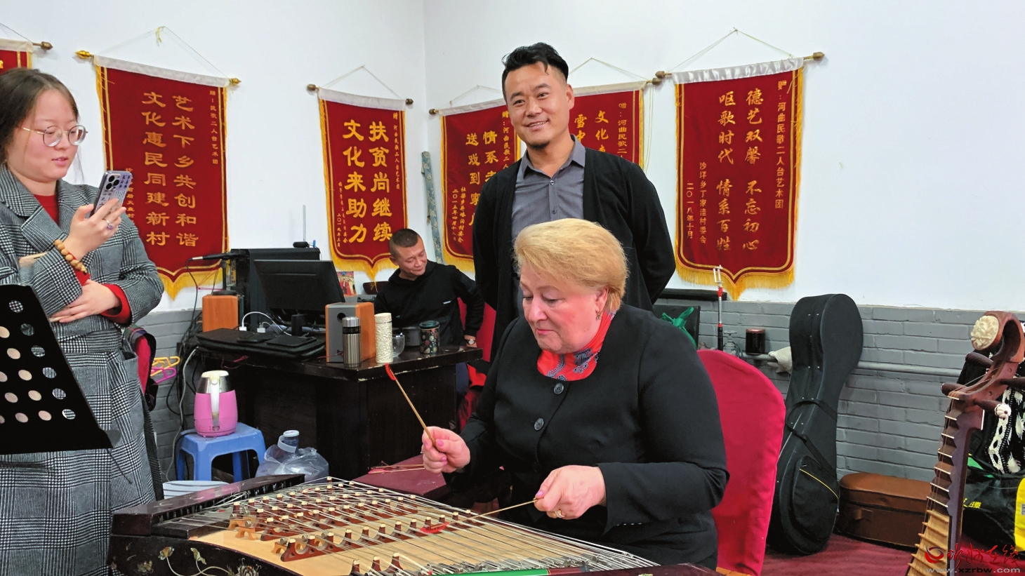 近日,俄羅斯國家大劇院獨(dú)唱演員埃琳娜·奧庫利謝娃和中央音樂學(xué)院、太原師范學(xué)院音樂系師生一行來到河曲采風(fēng),對河曲民歌二人臺表現(xiàn)出極大興趣。 在河曲民歌二人臺藝術(shù)團(tuán),大家實地參觀和感受了河曲縣地方特色民歌文化。在欣賞了河曲民歌《大紅公雞毛腿腿》《三天路程兩天到》《那是個誰》器樂合奏后,埃琳娜·奧庫利謝娃被河曲這一獨(dú)特的藝術(shù)深深吸引,全程進(jìn)行了拍照和錄像,還現(xiàn)場學(xué)習(xí)了揚(yáng)琴演奏。 埃琳娜·奧庫利謝娃是俄羅斯國家大劇院獨(dú)唱演員、莫斯科國立柴可夫斯基音樂學(xué)院聲歌系教授,榮獲俄羅斯文化部文化成就獎。中央音樂學(xué)院、太原師范學(xué)院音樂系的師生們興致勃勃地觀看了河曲民歌的精彩演出,并和藝術(shù)團(tuán)的演員進(jìn)行了互動交流。 (王春梅 王小帛) (責(zé)任編輯:盧相汀) |