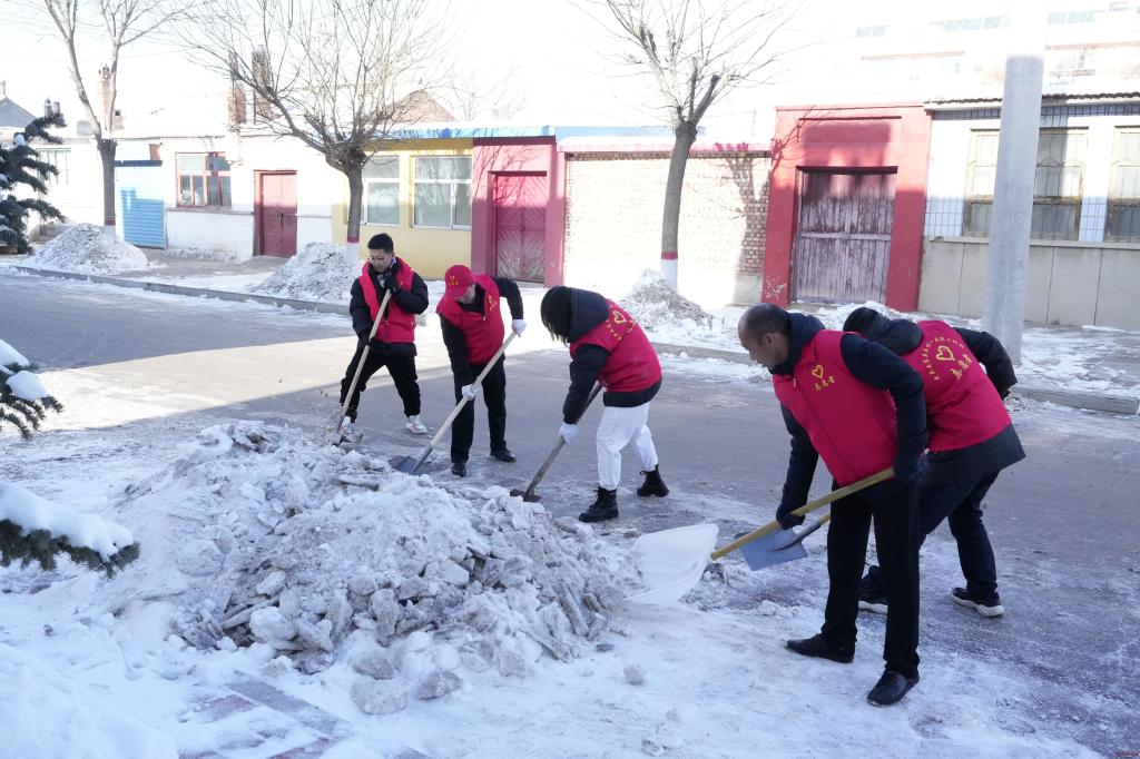 雪中志愿紅,最是暖心人??h城大街小巷隨處可見身穿“紅馬甲”的志愿者推開厚厚的積雪,為居民留下一條條“安全路”,雖然當(dāng)?shù)貧鉁氐瓦_(dá)到零下二十多度,但大家不畏嚴(yán)寒鉚足干勁,分工有序、默契配合,干得熱火朝天。