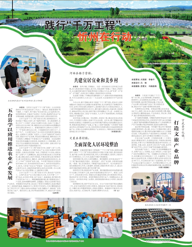 以學(xué)習(xí)運(yùn)用“千萬(wàn)工程”經(jīng)驗(yàn)為引領(lǐng),堅(jiān)持規(guī)劃先行。具體實(shí)施3個(gè)精品示范村、25個(gè)提檔升級(jí)村。深入推進(jìn)廁所、垃圾、污水“三大革命”,改造衛(wèi)生廁所372座,完成3個(gè)鄉(xiāng)鎮(zhèn)6個(gè)村的生活污水治理工程,確保農(nóng)村生活垃圾收運(yùn)處置覆蓋自然村比例達(dá)到96%以上。新建改建農(nóng)村公路69.4公里和“三個(gè)一號(hào)”旅游公路36.06公里。打造庭院經(jīng)濟(jì)示范村15個(gè)、示范戶75戶。五臺(tái)現(xiàn)代農(nóng)業(yè)產(chǎn)業(yè)示范區(qū)在堅(jiān)持典型引路的基礎(chǔ)上,還要加大力度推廣東雷鄉(xiāng)上王全村“流量經(jīng)濟(jì)”的成功經(jīng)驗(yàn),推進(jìn)鄉(xiāng)村產(chǎn)業(yè)發(fā)展,帶動(dòng)農(nóng)民增收致富,確保農(nóng)民人均可支配收入增幅高于年度地區(qū)生產(chǎn)總值增速。動(dòng)態(tài)監(jiān)測(cè)防貧返貧和易地搬遷后續(xù)扶持,促進(jìn)脫貧人口持續(xù)增收,牢牢守住不發(fā)生規(guī)模性返貧的底線。強(qiáng)化文明村、星級(jí)文明戶創(chuàng)建,堅(jiān)持用文明鄉(xiāng)風(fēng)浸潤(rùn)美麗鄉(xiāng)村。