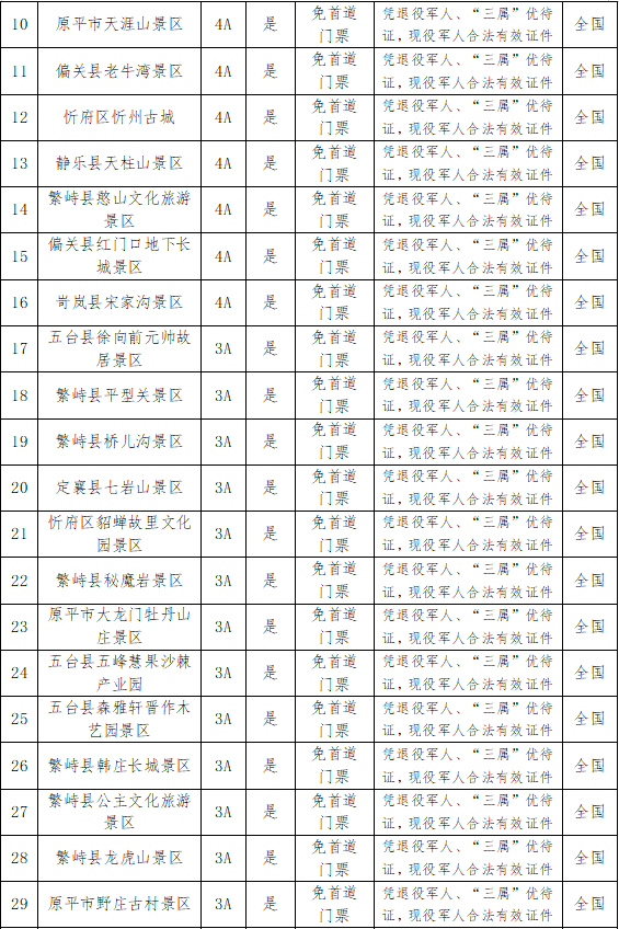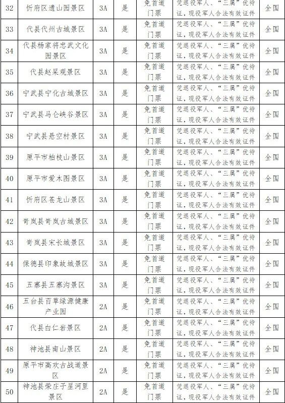 | “五一”期間 忻州市51家A級(jí)景區(qū)向這些人減免門票(附景區(qū)名單) |