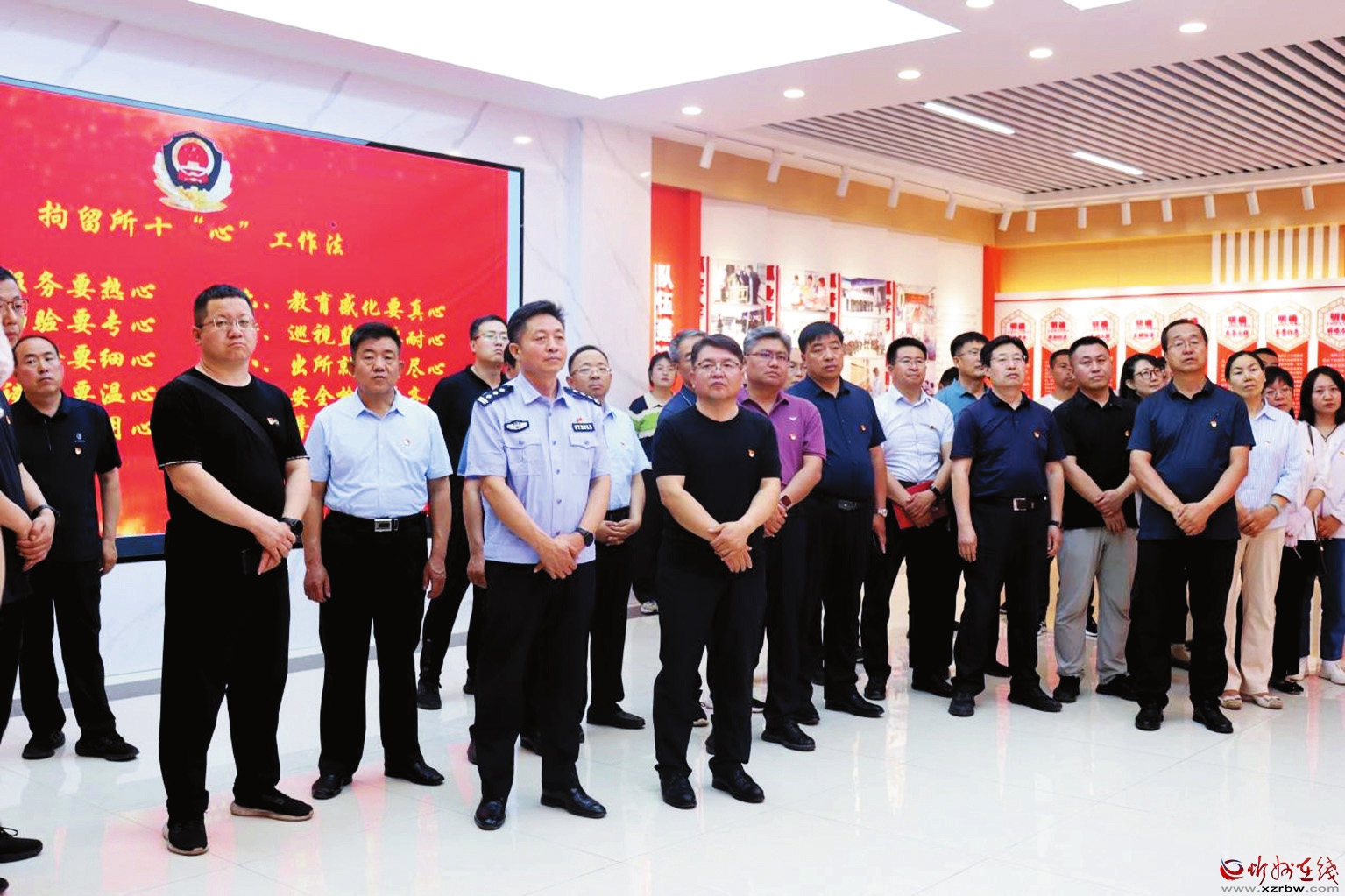 忻州市第一中學校黨員干部在教育基地講解員的帶領下,依次對憲法普法大廳、法治文化長廊、拘留所各功能用房等處進行參觀,詳細了解拘留所的職能作用、日常工作、管理、教育方式方法,以及被拘留人員的一日生活制度,觀看了專題警示教育片等。忻州市第一中學校黨委書記、校長陳漢明還在基地內(nèi)給黨員干部上了一堂黨課。