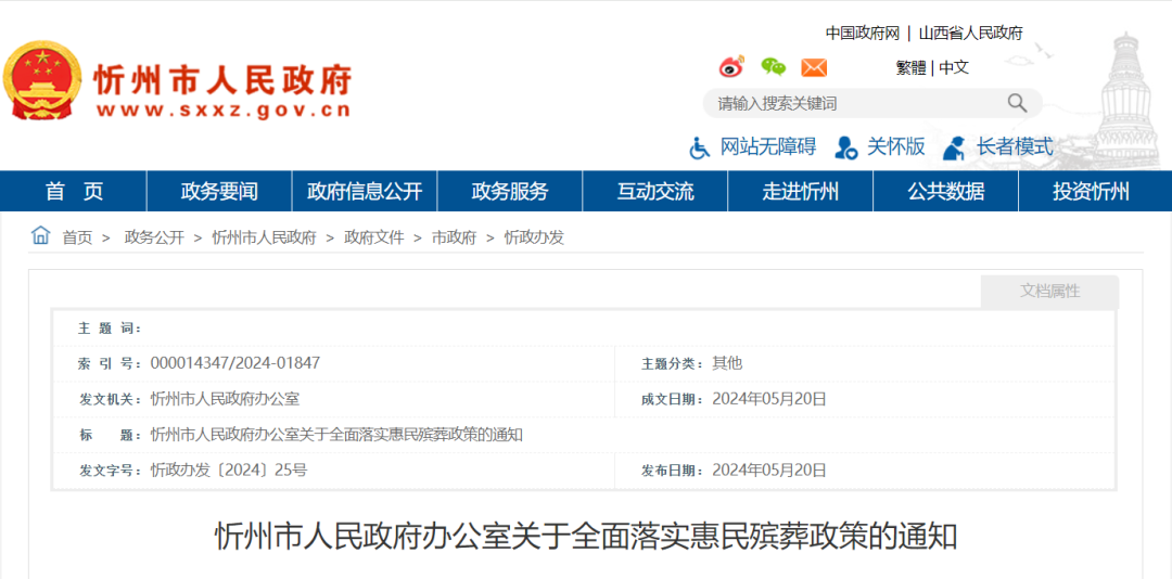 | 忻州市政府通知:殯葬費(fèi)用減免政策來(lái)了! |