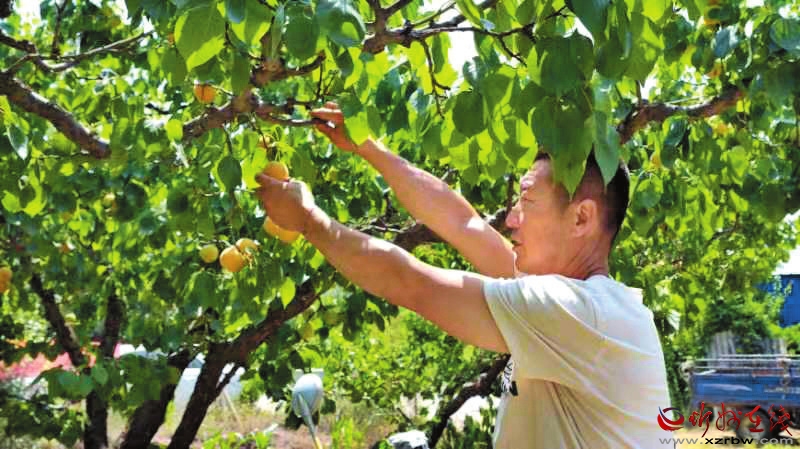 村民張連成每天早早地就來(lái)到自家杏園里摘杏,然后進(jìn)行挑選、裝箱,忙得不亦樂(lè)乎?!懊刻於寄芙拥讲簧儆唵?,為了保證杏的新鮮度,必須當(dāng)天現(xiàn)摘才行。”張連成一邊跟記者交談,一邊熟練地將白水杏挨個(gè)包好果網(wǎng)裝箱?!拔曳N了30畝的白水杏,一畝地差不多能產(chǎn)1000多斤,按照歷年的行情來(lái)說(shuō),差不多能掙七八萬(wàn)。”說(shuō)到收入,老張笑得合不攏嘴。