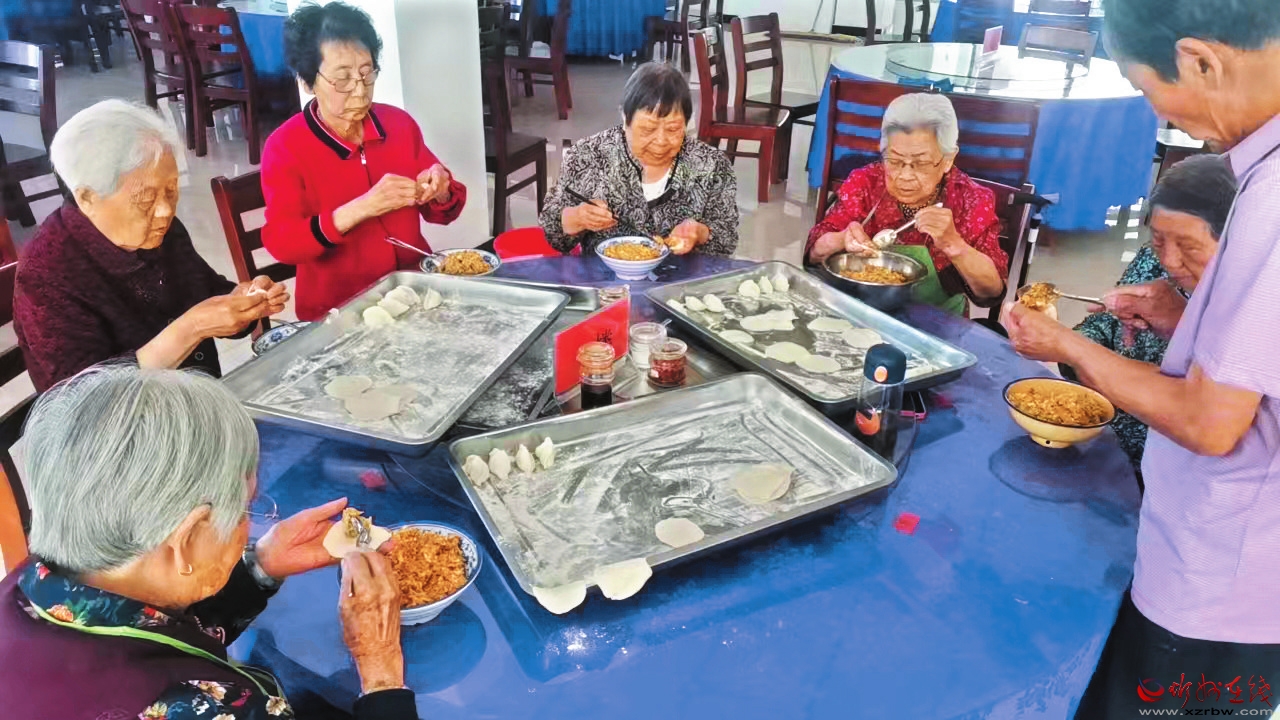 老年人其樂(lè)融融一起包餃子