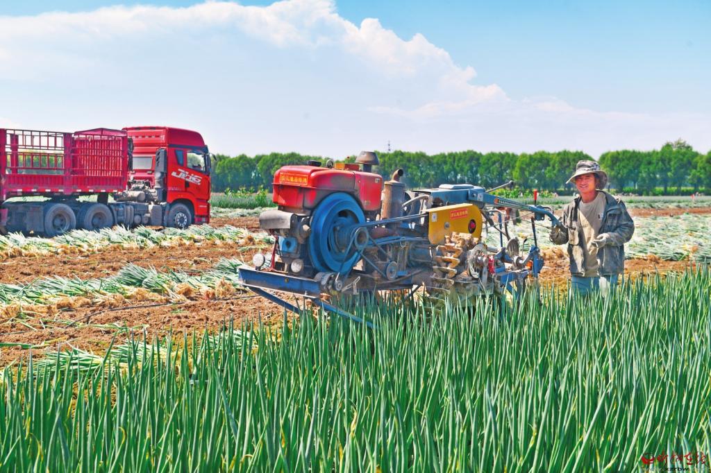 村民們有序地進(jìn)行著收蔥、去皮、捆扎、搬運(yùn)、裝車等工序,大家忙得熱火朝天,也享受著豐收的喜悅,現(xiàn)場(chǎng)呈現(xiàn)出一派豐收景象。