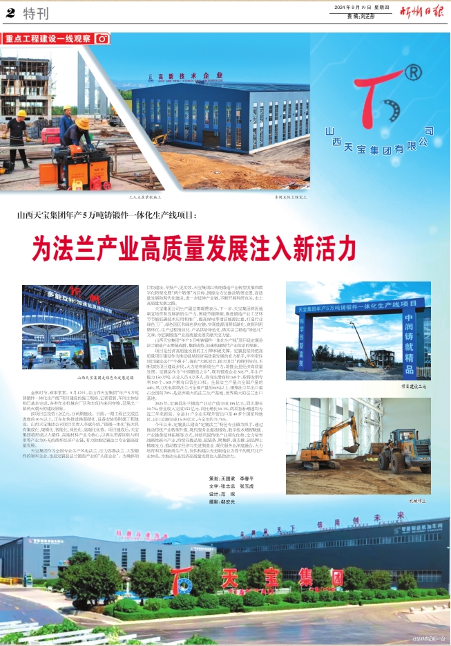 山西天寶集團(tuán)“年產(chǎn)5萬噸鑄鍛件一體化生產(chǎn)線”項(xiàng)目是定襄縣法蘭鍛造產(chǎn)業(yè)聚鏈成群、集群成勢(shì),加速構(gòu)建現(xiàn)代產(chǎn)業(yè)體系的縮影。