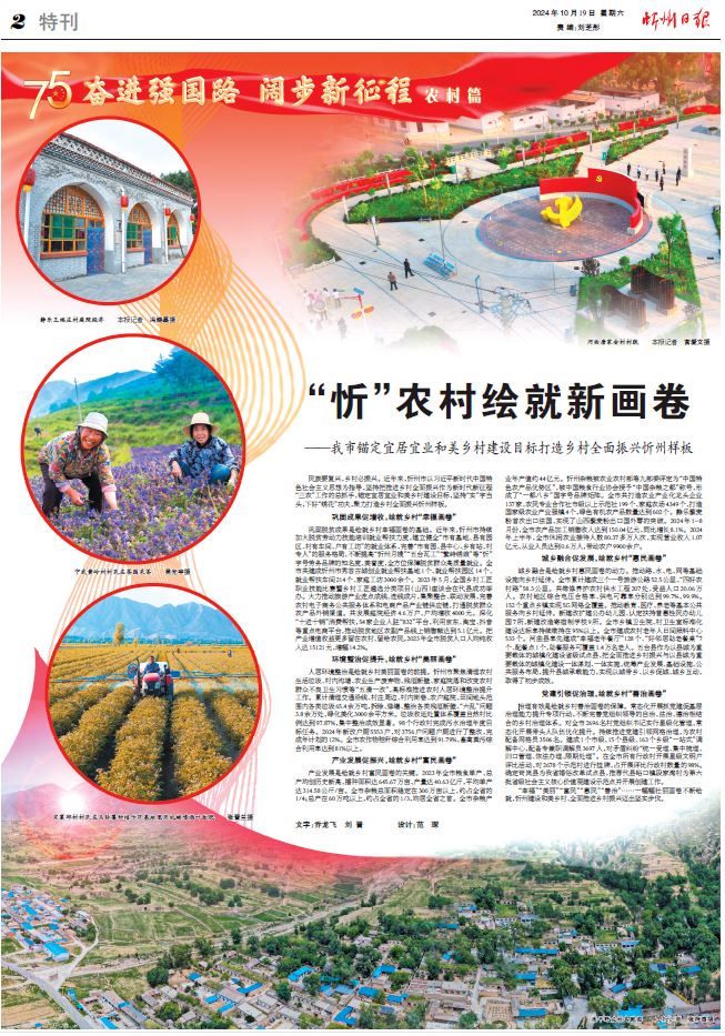 民族要復(fù)興,鄉(xiāng)村必振興。近年來,忻州市以習(xí)近平新時代中國特色社會主義思想為指導(dǎo),堅持把推進鄉(xiāng)村全面振興作為新時代新征程“三農(nóng)”工作的總抓手,錨定宜居宜業(yè)和美鄉(xiāng)村建設(shè)目標(biāo),堅持“實”字當(dāng)頭,下好“繡花”功夫,聚力打造鄉(xiāng)村全面振興忻州樣板。