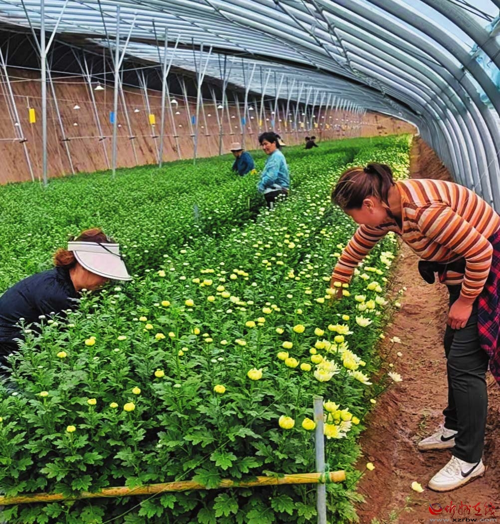 當(dāng)前,該公司長(zhǎng)期雇用5名工人打理大棚,農(nóng)忙時(shí)需要20多人同時(shí)干活,有效帶動(dòng)了周邊村民就近務(wù)工。該村村民劉大爺今年65歲,兒女都在外打工,對(duì)于菊花大棚的這份工作,他非常滿意:“自從村里開始種菊花,我就來大棚干活了。離家近,也不辛苦,一天能賺一百多塊錢,很不錯(cuò)?!?/p>