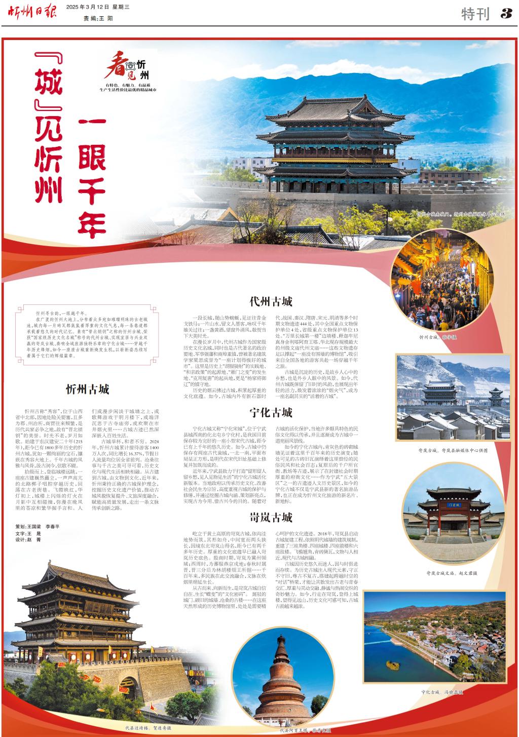 在廣袤的忻州大地上,分布著眾多宛如璀璨明珠的古老城池,城內(nèi)每一片磚瓦都氤氳著厚重的文化氣息,每一條巷道都承載著悠久的時(shí)代記憶。素有“晉北鎖鑰”之稱的忻州古城、榮獲“國(guó)家級(jí)歷史文化名城”稱號(hào)的代州古城、實(shí)現(xiàn)宜居與興業(yè)雙贏的岢嵐古城、奏響全域旅游獨(dú)特樂(lè)章的寧化古城……穿越千年歷史烽煙,如今一座座古城重新煥發(fā)生機(jī),以嶄新姿態(tài)續(xù)寫(xiě)著屬于它們的輝煌篇章。