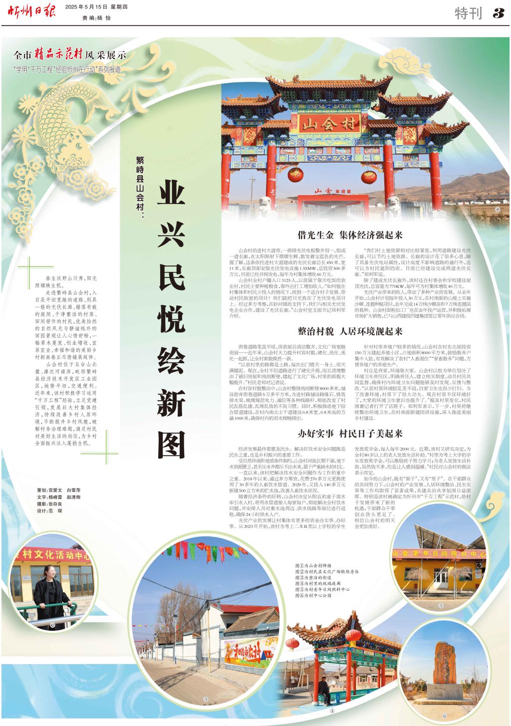如今的山會(huì)村,既有“面子”,又有“里子”。在干部群眾的共同努力下,山會(huì)村的產(chǎn)業(yè)發(fā)展、人居環(huán)境整治、民生實(shí)事等工作均取得了顯著成果,共建共治共享氛圍日益濃厚。特別是該村被確定為忻州市“千萬(wàn)工程”示范村,給村子發(fā)展帶來(lái)了新的機(jī)遇,干部群眾干事創(chuàng)業(yè)勁頭更足了。相信山會(huì)村的明天會(huì)更加美好。