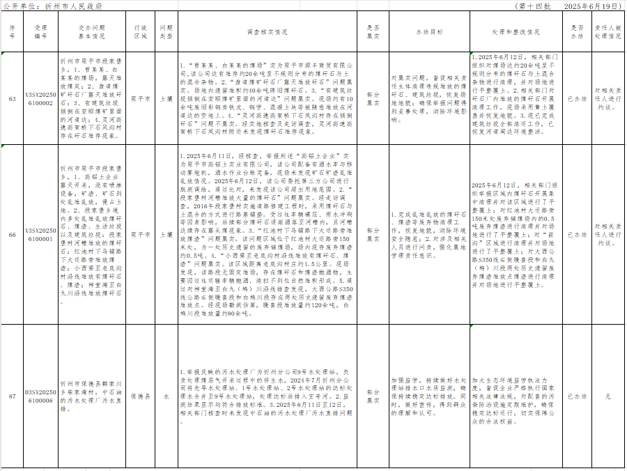 中央生態(tài)環(huán)境保護督察組群眾信訪舉報轉(zhuǎn)辦和邊督邊改公開情況一覽表(第十四批)