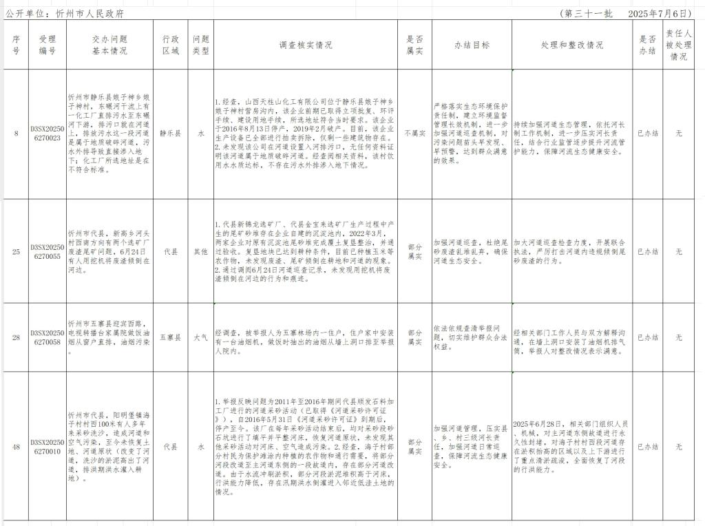 中央生態(tài)環(huán)境保護督察組群眾信訪舉報轉(zhuǎn)辦和邊督邊改公開情況一覽表(第三十一批)