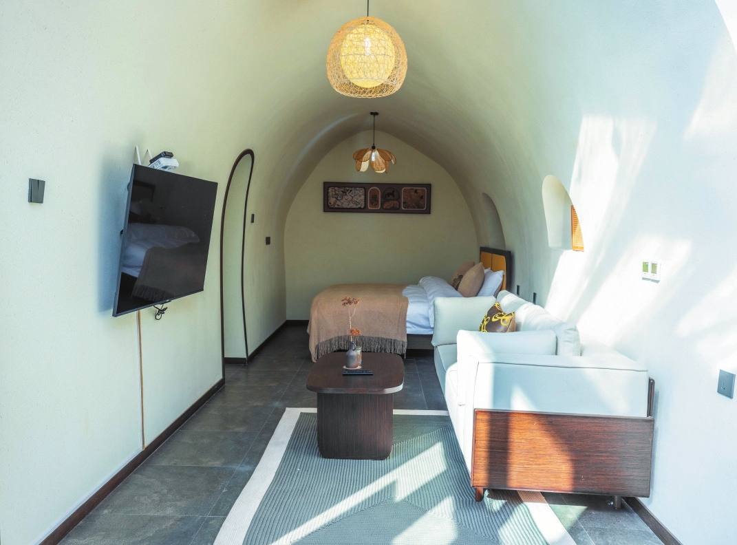 設(shè)計(jì)獨(dú)特的三層小院子,是游客喝茶、露營(yíng)、抄經(jīng)、健身的好去處。民宿于2024年2月9日(大年三十)試營(yíng)業(yè),共有22間不同主題的客房,節(jié)假日期間每天客滿,平時(shí)的入住率在80%以上,深受游客歡迎。(劉耀 宮可欣)