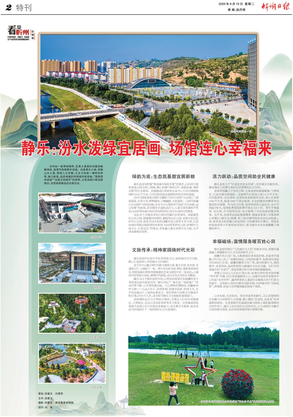 汾河如一條翠綠綢帶,在黃土高原的溝壑間蜿蜒流淌,溫柔環(huán)抱著靜樂縣城。這座晉北小城,深植山水之基,揮灑人文濃墨,正全力繪就一幅特色鮮明、魅力彰顯、品質(zhì)卓越的幸福城市新畫卷。“國(guó)家園林縣城”“全國(guó)文明城市”的殊榮,正是其踐行新發(fā)展理念、實(shí)現(xiàn)美麗蝶變的光輝見證。
