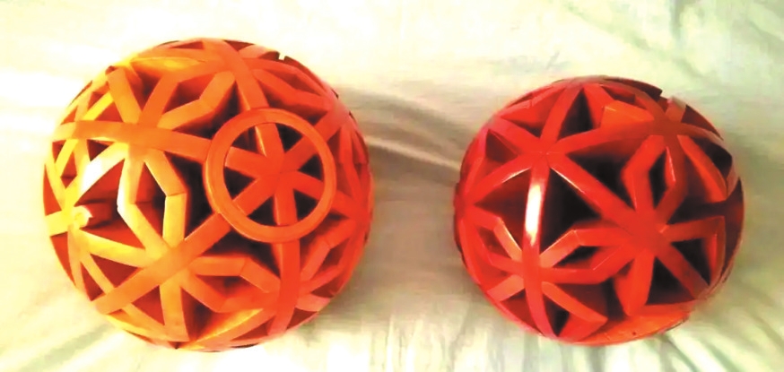 “沒(méi)用一顆釘子、一滴膠水,我們利用了榫卯技藝,讓108塊形狀各異的木構(gòu)件緊密連接,構(gòu)成一個(gè)鏤空的地球,祈盼世界團(tuán)結(jié)、人類和平。”《榫卯的宇宙》編劇、忻州王爾文玩(魯班鎖、孔明鎖)(以下簡(jiǎn)稱“王爾文玩”)傳統(tǒng)木作技藝非物質(zhì)文化遺產(chǎn)代表性傳承人趙永功說(shuō)。