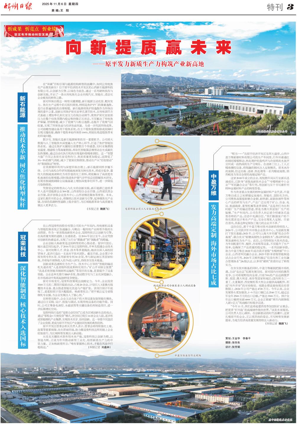 從攻克關(guān)鍵技術(shù)到布局未來產(chǎn)能,冠榮科技以創(chuàng)新為楫,以智造為帆,正成為忻州推動新型工業(yè)化、培育新質(zhì)生產(chǎn)力的中堅力量。正如楊淑榮所言:“唯有掌握核心技術(shù),才能在風浪中行穩(wěn)致遠?!保ū緢笥浾邉Ⅵ瘟郑?/p>