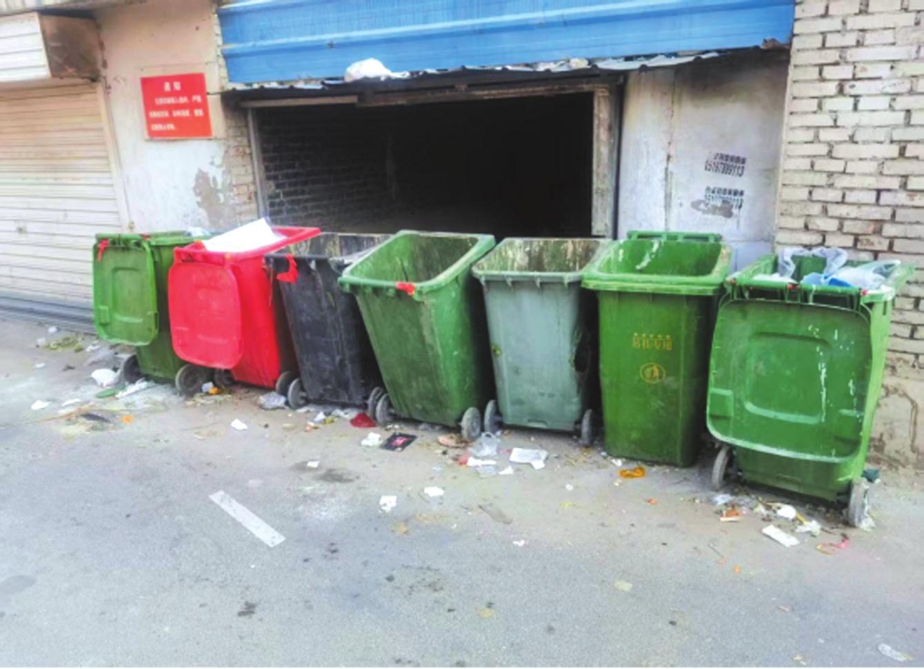 忻府區(qū)和平東街玻璃廠(chǎng)宿舍垃圾桶周?chē)K亂