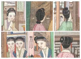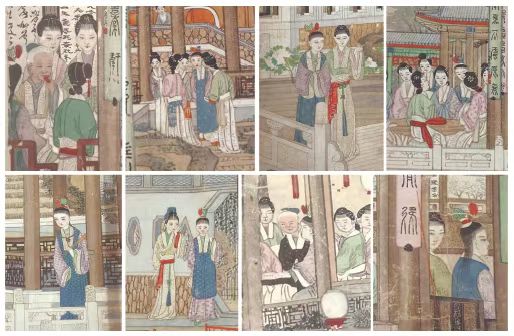 《大觀園圖》小姐、丫鬟的不同發(fā)型前后面,上列為小姐,下列為丫鬟