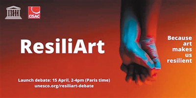 聯(lián)合國(guó)教科文組織“漫談堅(jiān)韌藝術(shù)”線上討論的宣傳海報(bào)。此次討論的主題是“藝術(shù)家和創(chuàng)造力如何戰(zhàn)勝危機(jī)”。