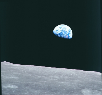 1968年,人類首次繞月飛行,阿波羅8號(hào)飛船上,航天員威廉·安德斯拍下了一張照片——黑色錦緞般的太空中,蔚藍(lán)的地球正從月球的地平線上,冉冉升起。