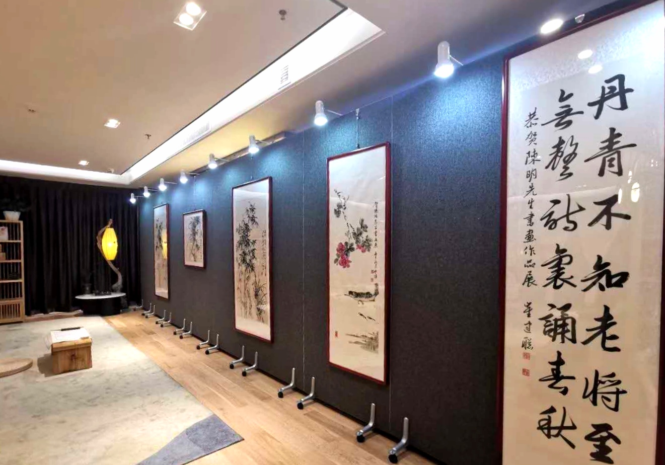 這便是近期在晉中市辰興頤郡美學中心舉辦的陳明書畫作品展。布展別具一格,作品精美大氣,共展出了我省書畫藝術(shù)家陳明先生的20多幅字畫,他的蘭竹繪畫和書法作品清新、俊逸、淡雅、高古,讓參觀者贊不絕口。