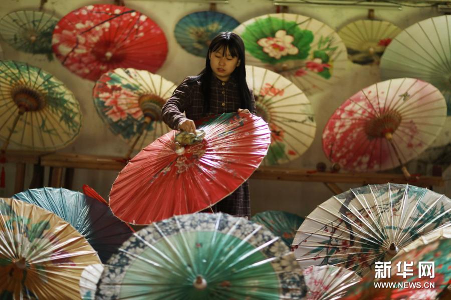 2019年6月,“赤水油紙傘制作技藝”被列入貴州省級(jí)非物質(zhì)文化遺產(chǎn)名錄。當(dāng)?shù)匾劳写笸沛?zhèn)的旅游產(chǎn)業(yè),采取政策引導(dǎo)、資金扶持等方式,鼓勵(lì)民間藝人重拾油紙傘制作技藝。油紙傘產(chǎn)品投放旅游市場(chǎng),深受消費(fèi)者青睞。油紙傘制作不僅帶動(dòng)眾多群眾就業(yè)增收,也讓油紙傘技藝重新煥發(fā)生機(jī)。新華社發(fā)(王長(zhǎng)育 攝)