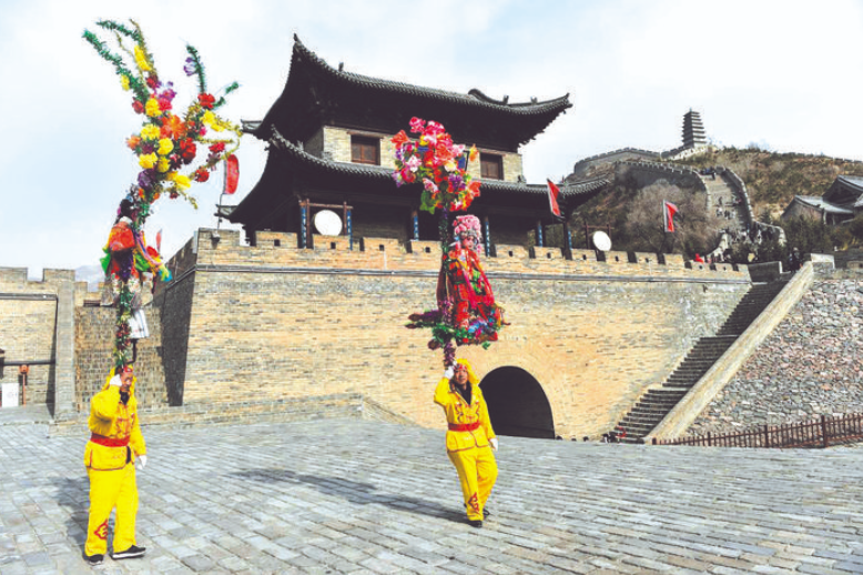 2月23日,在山西省代縣雁門關(guān),郝永?。ㄗ螅┰谶M(jìn)行撓閣表演。