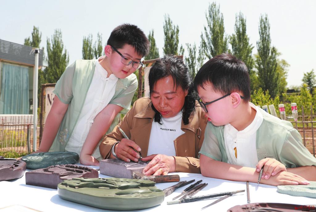 在活動現場,市級剪紙、面塑和硯臺雕刻等技藝傳承人講述非遺知識,與市民互動分享。小朋友們跟隨忻府區(qū)面塑藝人面對面進行研學體驗。捏、揉、搓、刻、粘……做出了一個個憨態(tài)可掬的動物造型。