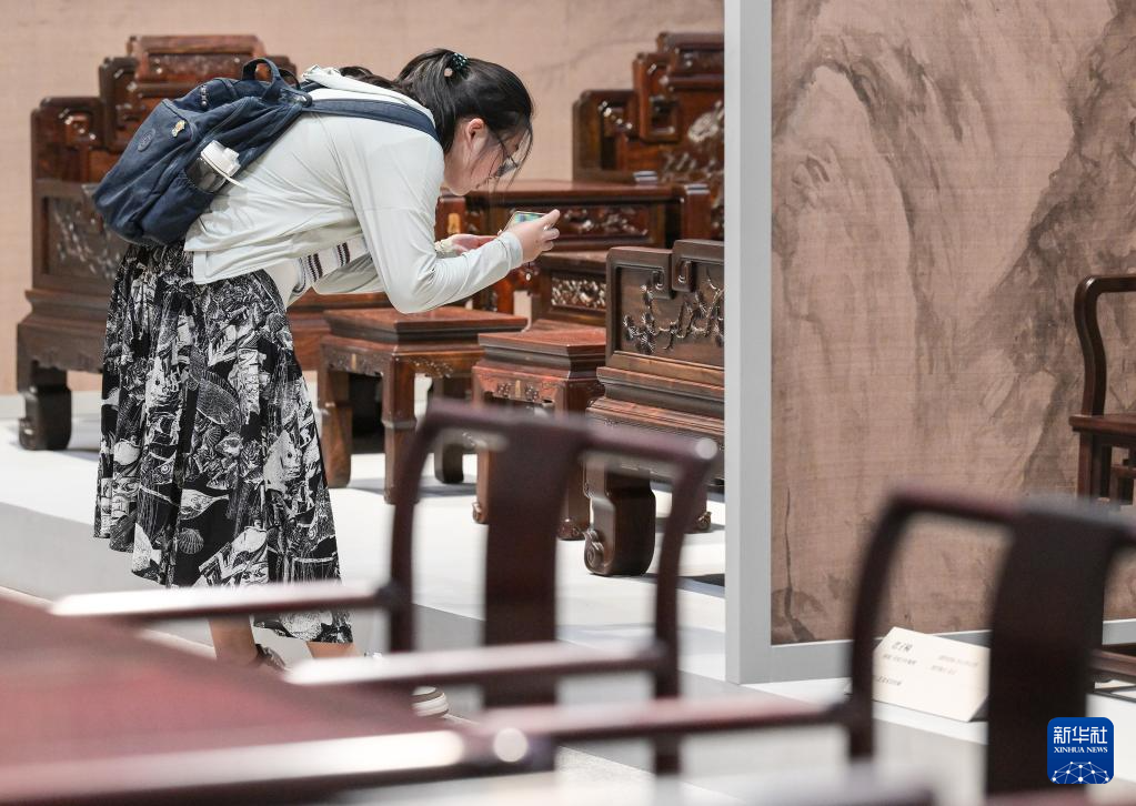 當(dāng)日,“心·傳——陳玉樹(shù)新時(shí)代古典家具藝術(shù)展”在位于北京的中國(guó)工藝美術(shù)館、中國(guó)非物質(zhì)文化遺產(chǎn)館舉辦,展出了高級(jí)工藝美術(shù)師陳玉樹(shù)近年創(chuàng)作的20套古典家具,展現(xiàn)出中國(guó)木作技藝之美。新華社記者 李賀 攝