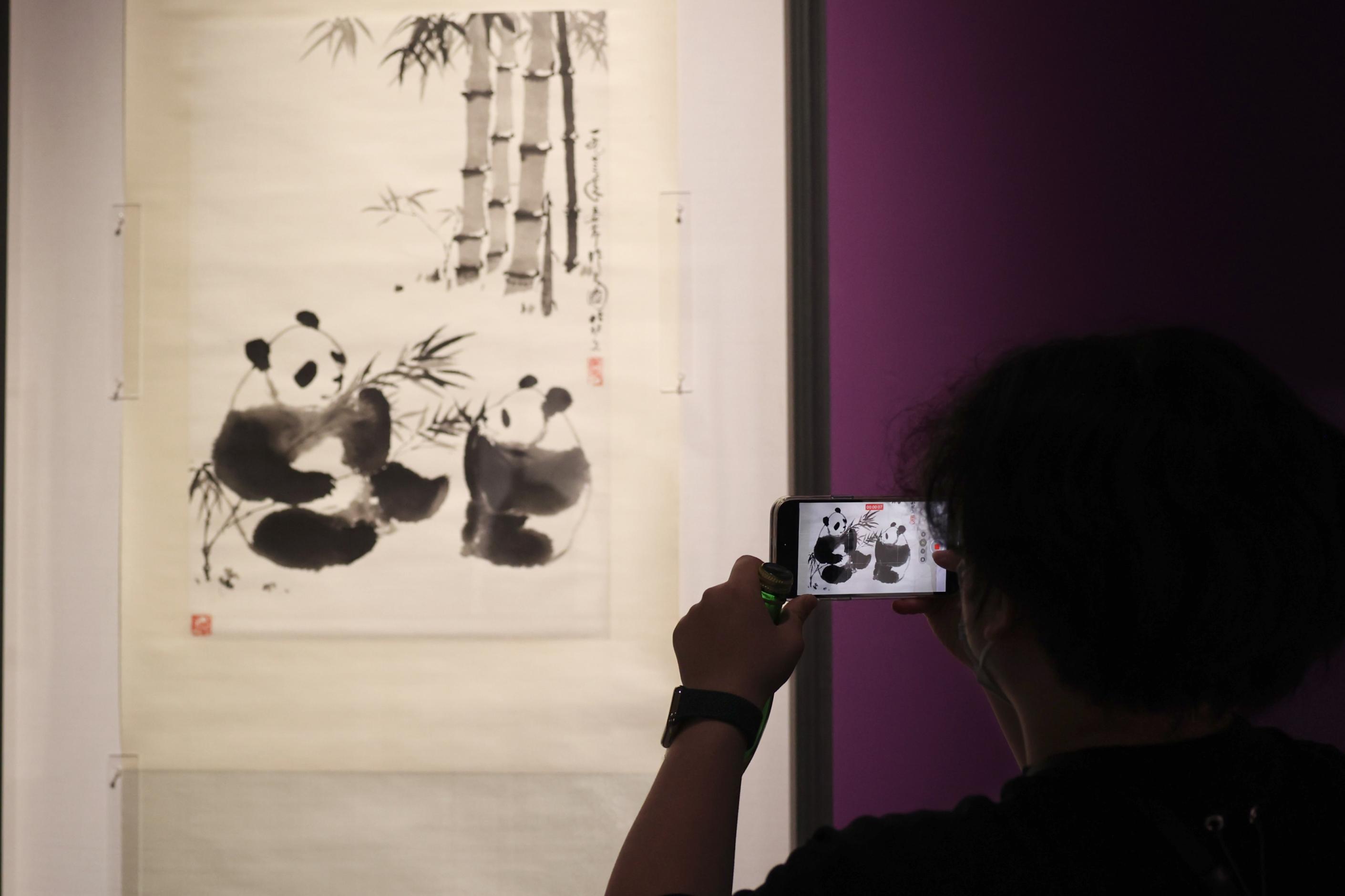 此次展覽匯集了中國國家圖書館、中國國家畫院、北京畫院、北京市文物交流中?、北京市徐悲鴻紀念館、湖南博物院、浙江省博物館、沈陽故宮博物院等幾十家機構收藏的重要藏品,重點展出了齊白石《聚珍十開冊》《荔枝圖》,張大千《芳馨遠聞》《吹簫仕女圖》,徐悲鴻《少陵詩意圖》、傅抱石《金城圖》、黃賓虹《吳淞記游圖》、潘天壽《墨龍》、李可染《清漓風光》《無限風光在險峰》等眾多名家罕見真跡。這套“全明星陣容”難得一見,許多作品為首次公開展出。