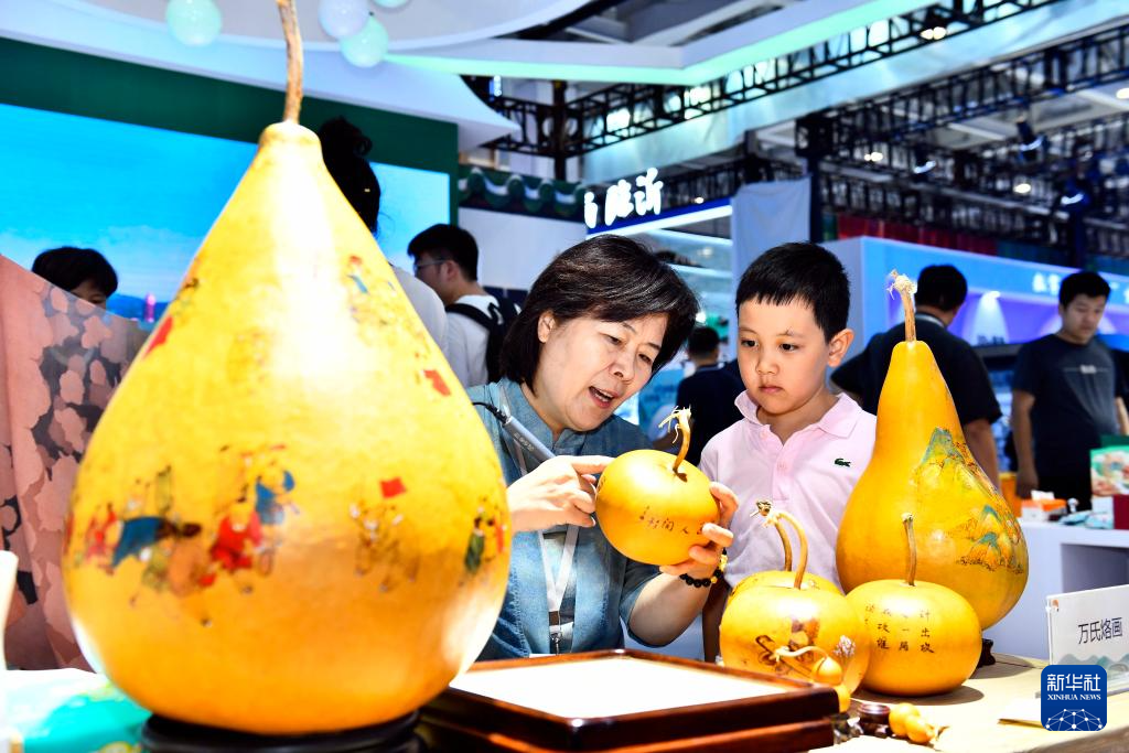 9月16日,在山東國(guó)際會(huì)展中心,市民在浙江省展廳參觀。