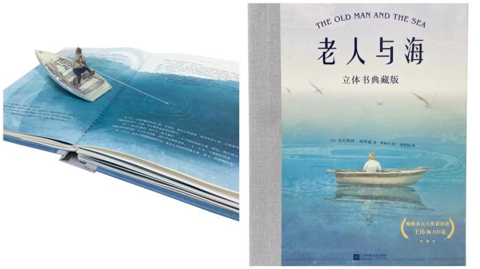 《走近三星堆》是一本極具視覺震撼力的三星堆全景紙藝立體書,它用7個立體跨頁,帶領(lǐng)讀者在探尋中揭開古蜀國的神秘面紗,全面呈現(xiàn)了三星堆的考古發(fā)掘歷程和三星堆文明的大致面貌,還對三星堆遺址第二輪考古發(fā)掘的初步成果做了概要性的介紹,并融入了很多考古小知識,其入選“2022年度中國好書”,并成為首個入選該獎項的立體書?!独先伺c?!肥鞘撞恳粤Ⅲw書形式呈現(xiàn)的諾貝爾文學獎作品,全書共有20余個精巧可動的立體紙藝裝置,在不弱化名著原文的基礎(chǔ)上,將立體插畫融入書中,二者相輔相成,既能讓讀者體驗到傳統(tǒng)閱讀的樂趣,又能夠沉浸于豐富的立體紙藝場景中。